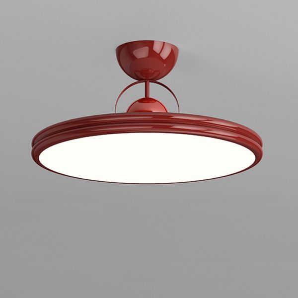 Retro Bauhaus Semi Flush Mount Ceiling Light, Glossy Metal LED Fixture with Geometric Sphere Accent - 110V-120V Red 16"