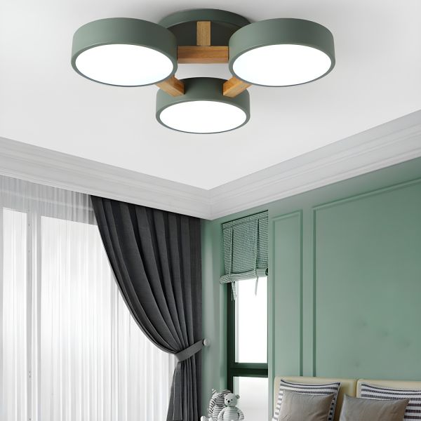 Scandinavian LED Flush Mount Ceiling Light, Wood and Metal Fixture with Acrylic Shades - 110V-120V 3 Green
