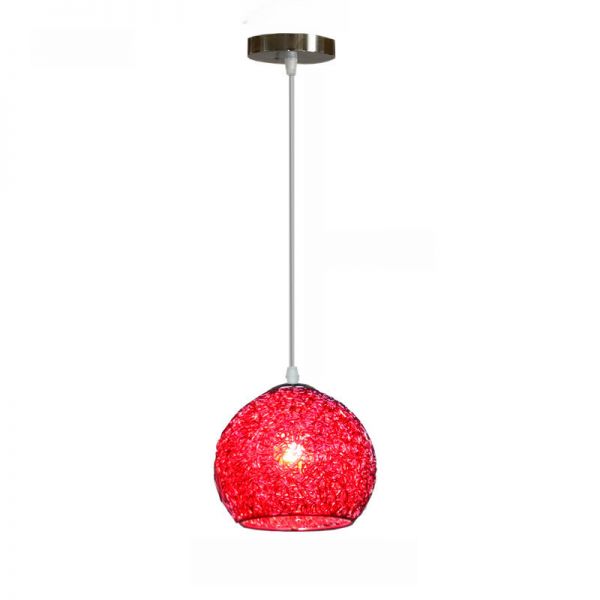 Contemporary Woven Aluminum Wire Pendant Light, Textured Globe Ceiling Fixture for Kitchen Island - 110V-120V Red 7"