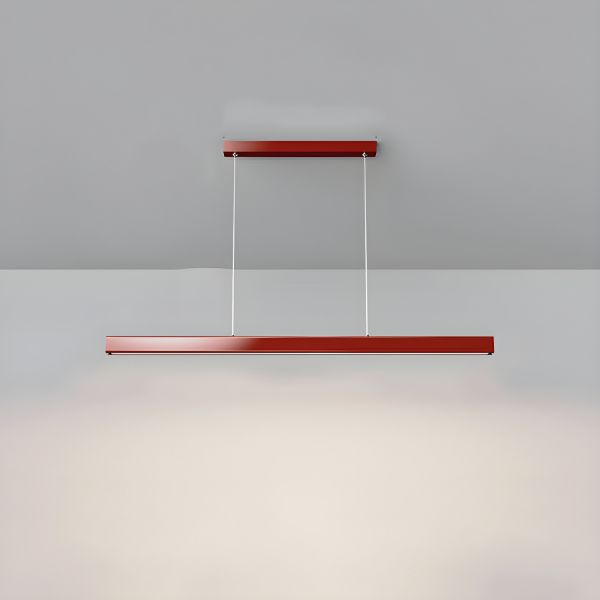 Minimalist Linear LED Island Light, Slim Red Suspension Bar Chandelier with Wood Accents for Dining Room - 110V-120V 31.5"