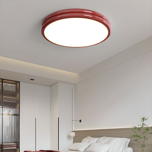 Scandinavian Round LED Flush Mount Ceiling Light, Vibrant Glossy Metal Fixture - Red 110V-120V 12"