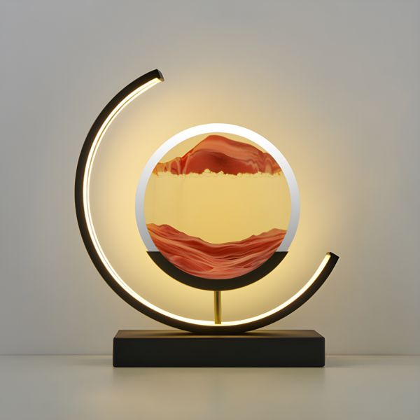 Contemporary LED Moving Sand Art Table Lamp with Dimmable Remote & 3D Kinetic Deep Sea Landscape - 110V-120V Red Remote Control Stepless Dimming Black