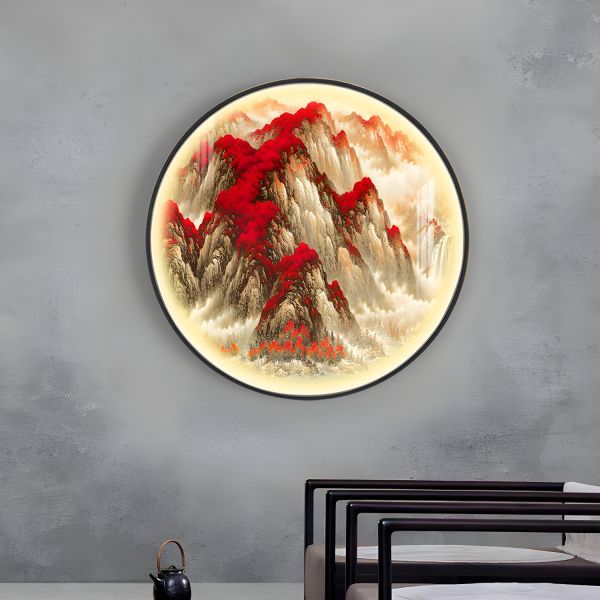 Modern Zen LED Wall Sconce, Circular Backlit Landscape Art for Living Room Ambience - Red 110V-120V