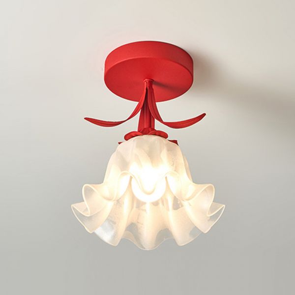 Whimsical Floral Semi Flush Mount Ceiling Light with Frosted Glass Petal Shade for Hallway Nursery - Red 110V-120V