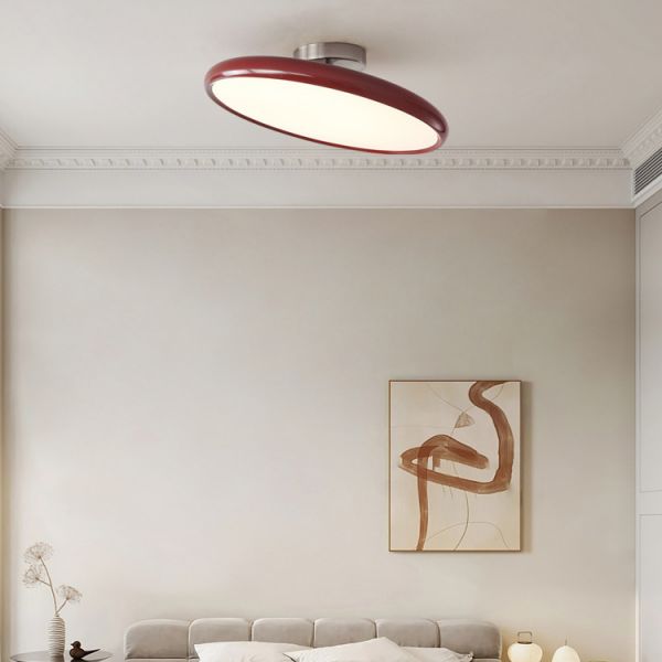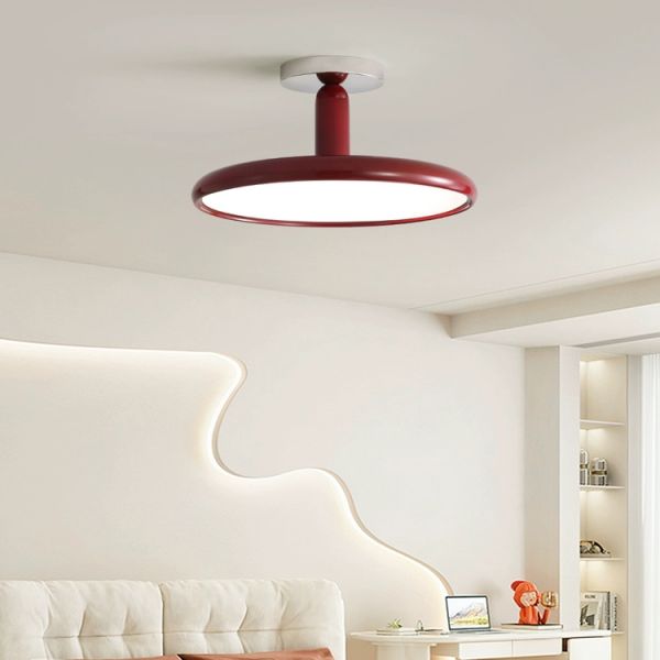 Bauhaus Retro Semi-Flush Mount Ceiling Light, Glossy Metal Disc LED Fixture for Bedroom - Red 110V-120V 12"
