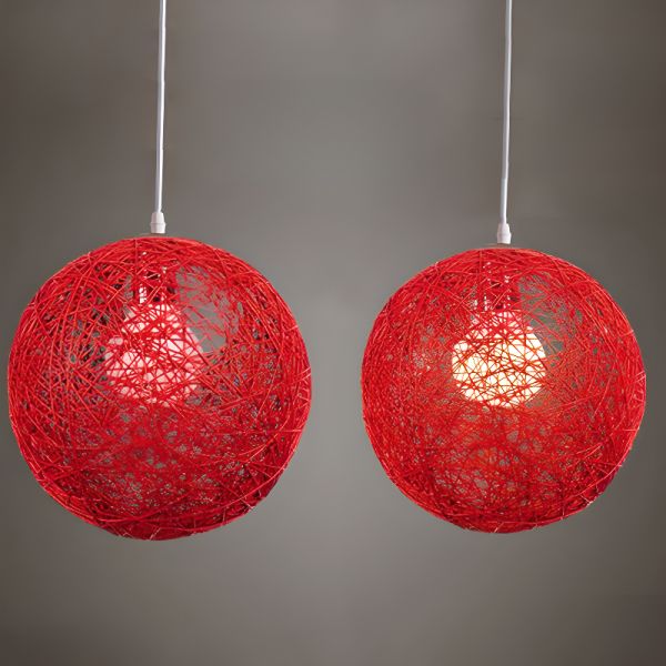 Bohemian Woven Sphere Pendant Light, Hemp Rope Globe Hanging Fixture for Ambient Glow - Red 110V-120V