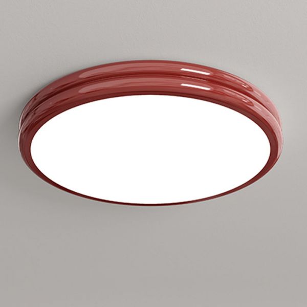 Nordic Retro LED Flush Mount Ceiling Light, Glossy Round Metal Fixture for Low Ceilings - Red 110V-120V 12"