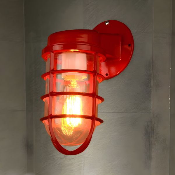 Outdoor Vintage Clear Glass Wall Light Sconce Caged Lantern Wall Lamp Lighting with 1 Light - 110V-120V Rust Red