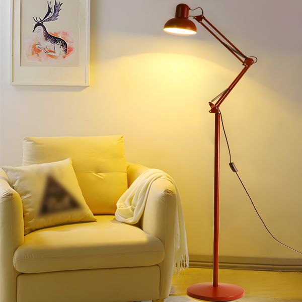 Industrial Swing Arm Floor Lamp with Adjustable Cantilever Design and Integrated Dimmer Control - 110V-120V Red
