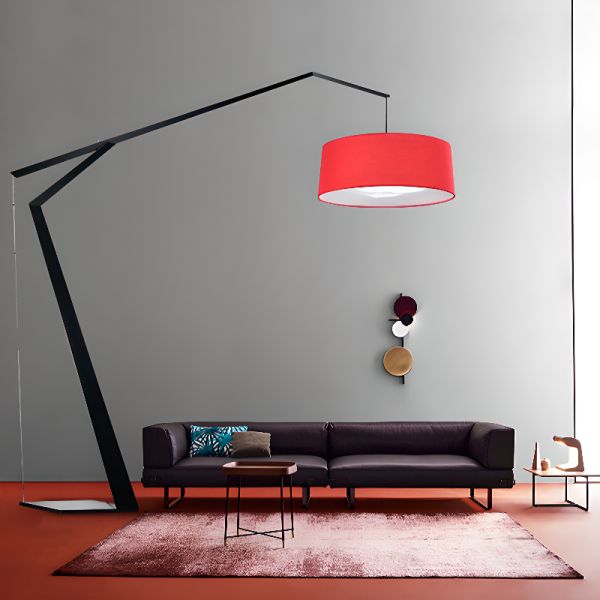 Geometric Minimalist Arc Floor Lamp with Fabric Drum Shade for Living Room - 110V-120V Red
