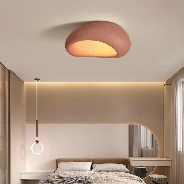 Wabi-Sabi Flush Mount Ceiling Light, Textured Resin Stone Fixture, Asymmetrical Pebble Shape - Brick Red 110V-120V 18"