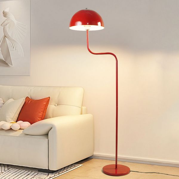 Mid-Century Arched Floor Lamp with Metal Dome Shade – Retro Standing Reading Light for Living Room & Bedroom - Red 110V-120V