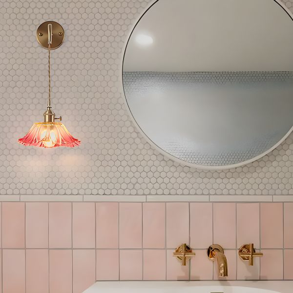 Vintage Fluted Glass Wall Sconce with Adjustable Hanging Cord and Rotary Switch - 110V-120V Red