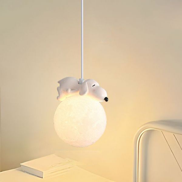 Whimsical Nordic Moon Pendant Light, Cute Sleeping Animal Hanging Lamp for Nursery Bedtime Ambiance - 110V-120V Dog Pink