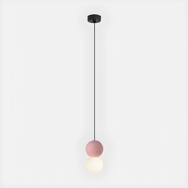Scandinavian Terrazzo Pendant Light, Geometric Double Sphere Hanging Lamp with Soft Ambient Glow for Bedroom or Kitchen Island - 110V-120V Pink