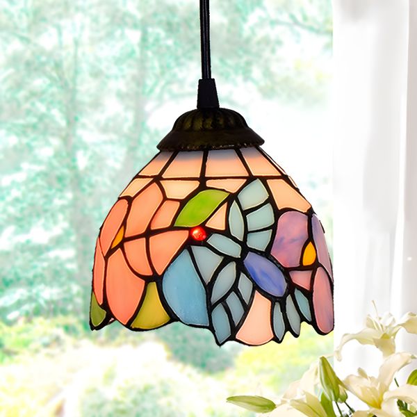 Flower Suspended Lighting Fixture Tiffany Style Stained Glass Pendant Light Fixture - 110V-120V Pink