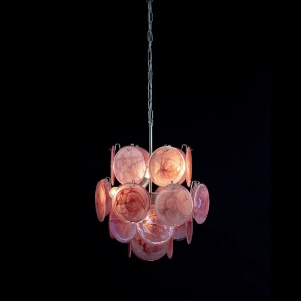 Mid-Century Tiered Glass Disc Chandelier - Art Deco Pendant Light with Translucent Shades - Pink 110V-120V 46 cm
