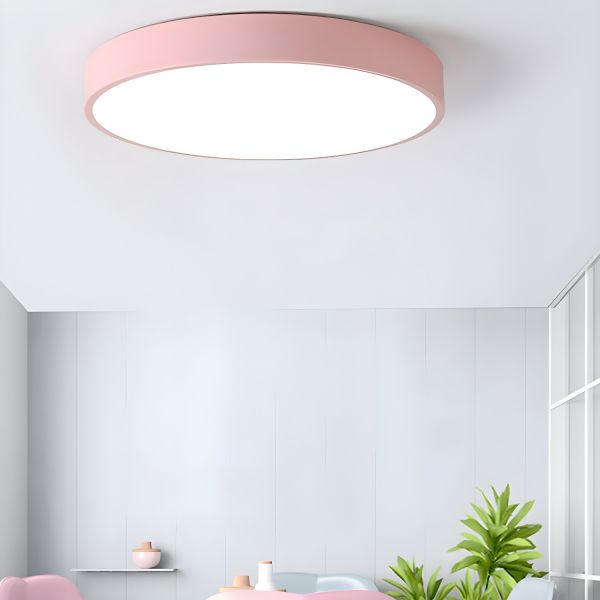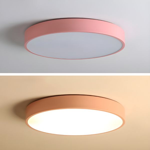 Scandinavian Minimalist Flush Mount Ceiling Light, Round Metal LED Fixture with Acrylic Shade - Pink 110V-120V 12"