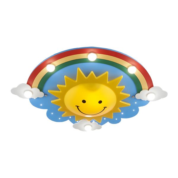Playful Sun and Rainbow Flush Mount Ceiling Light, Creative Cartoon Fixture for Kids Bedroom or Nursery - Yellow 110V-120V