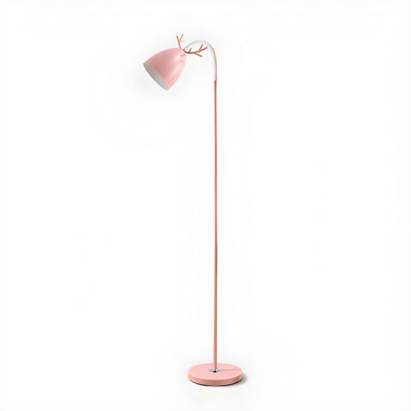 Macaron Style 1 Bulb Floor Lamp Antler and Bell Floor Reading Light with Metal Shade - 110V-120V Pink
