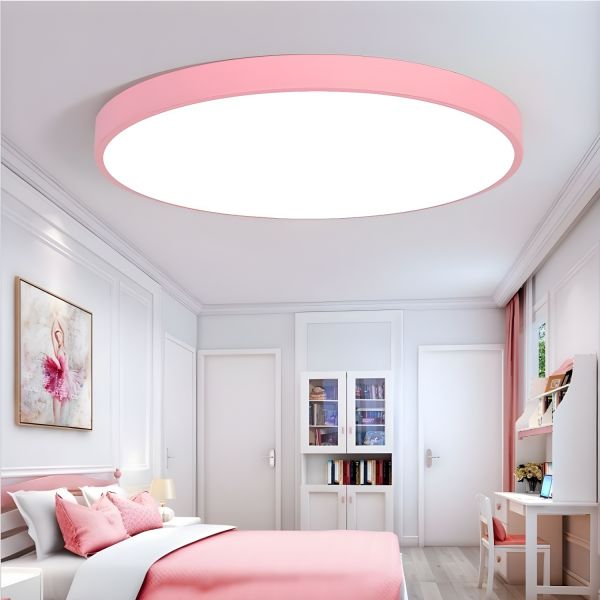 Scandinavian Ultra-Slim LED Flush Mount Ceiling Light, Round Low Profile Fixture - 110V-120V Pink 16" White Light