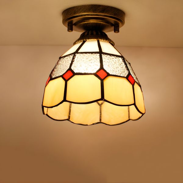 Tiffany Style Stained Glass Flush Mount Ceiling Light, 7-Inch Mini Vintage Fixture for Hallway Entryway - Yellow 110V-120V