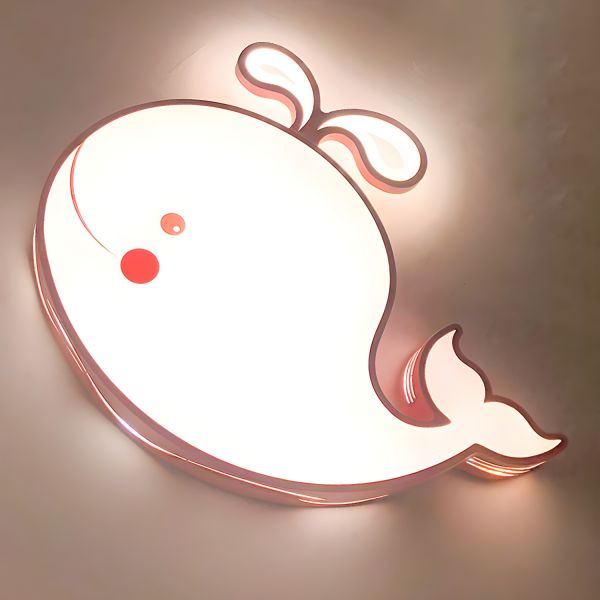 Playful Nautical Whale Ceiling Light, LED Flush Mount Fixture for Nursery & Bedroom - Pink 110V-120V Small White Light