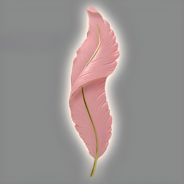 Sculptural Resin Feather Wall Sconce Art Deco LED Accent Light with Gold Trim for Hallway Bedroom - Pink 110V-120V Warm Light 46 cm