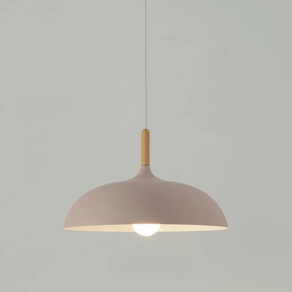 Scandinavian Wood Top Pendant Light, Matte Dome Shade for Dining Room - Pink 110V-120V 36 cm