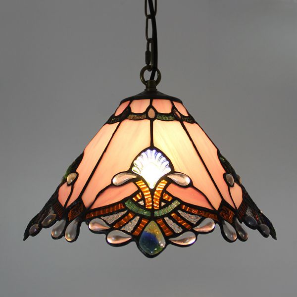 Vintage Stained Glass Pendant Light with Handcrafted Art Shade - 110V-120V Pinkish Red