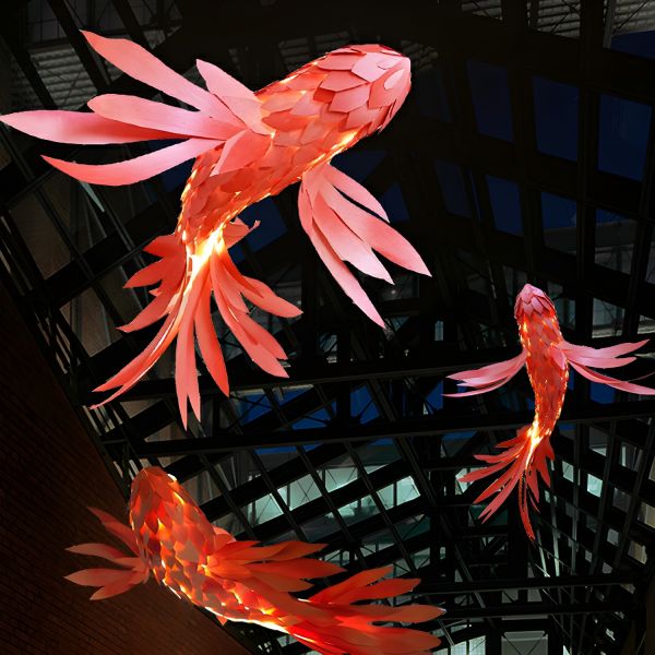 Nordic Wooden Fish Pendant Light, Sculptural Hanging Ceiling Lamp for Ambient Dining or Nursery - 110V-120V Pink 70 cm