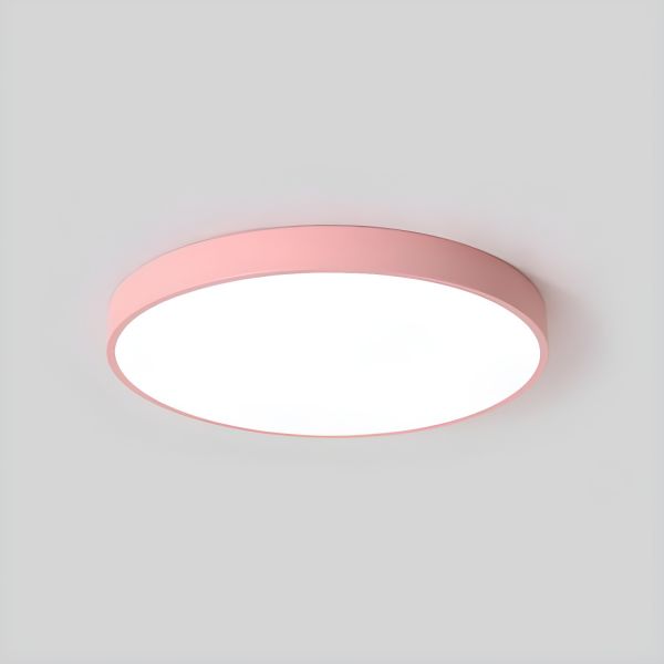 Scandinavian Minimalist LED Pendant Light, Ultra-Thin Disc Hanging Fixture for Kitchen Island - 110V-120V Pink 16"