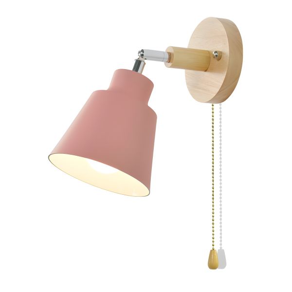 Nordic Minimalist Wall Sconce, Adjustable Wood & Metal Reading Light with Swivel Head - 110V-120V Pink With Switch