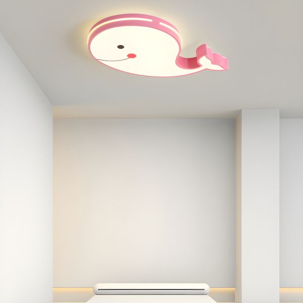 Whimsical Whale LED Flush Mount Ceiling Light, Creative Acrylic Animal Fixture for Kids Nursery - Pink 110V-120V 19.5" White Light