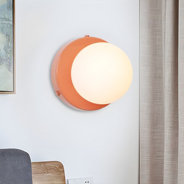 Pink Round Mini Sconce Macaron 1 Head Metallic Wall Lamp with Orb Glass Shade for Corridor