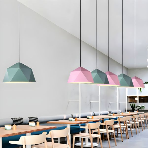 Nordic Geometric Pendant Light Fixture, Metal Origami Hanging Lamp - 110V-120V Pink 10"