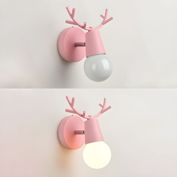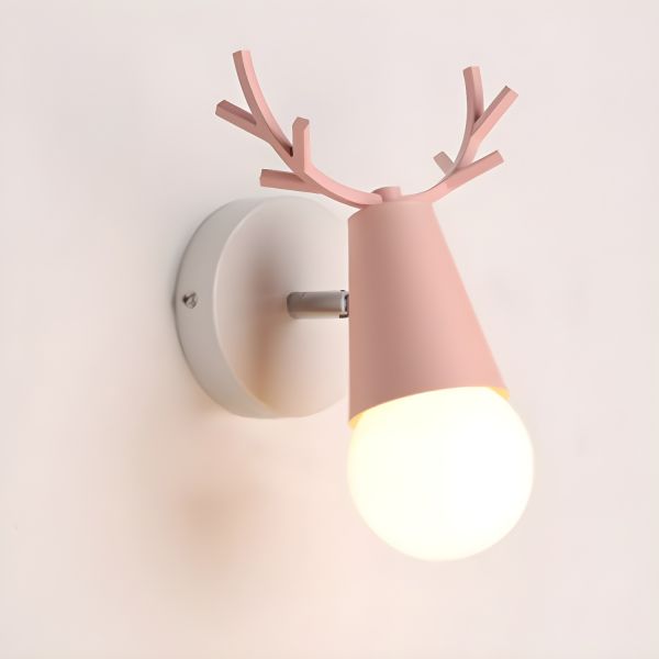 Nordic Antler Wall Sconce, Adjustable Metal Deer Head Light Fixture for Nursery Bedroom Hallway - 110V-120V Pink