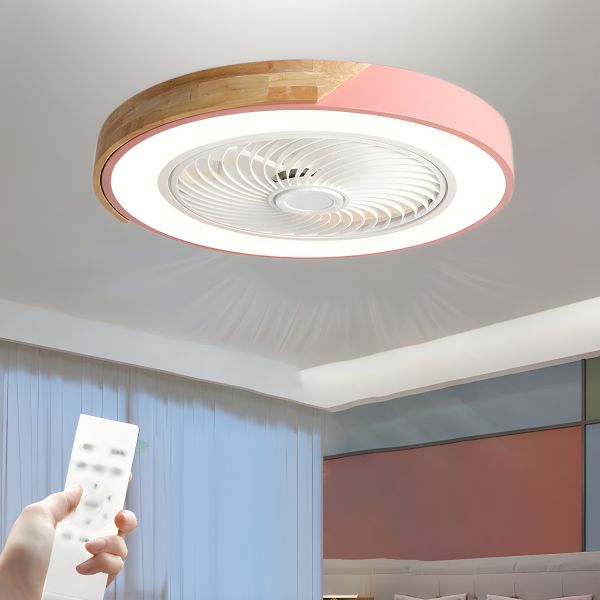 Minimalist Enclosed Ceiling Fan with Light, Low Profile Flush Mount for Bunk Beds & Nursery - 110V-120V Pink
