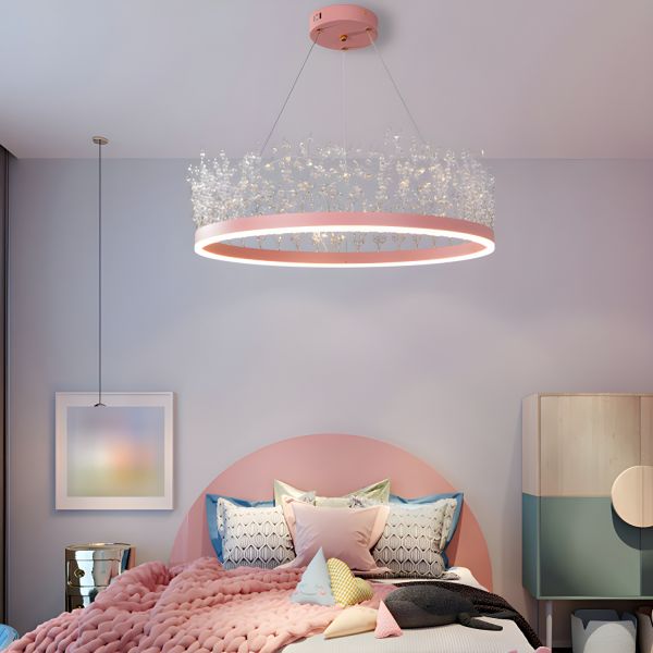 Luxe Crystal Branch Chandelier, LED Halo Pendant Light with Adjustable Cables - 110V-120V Pink 20"