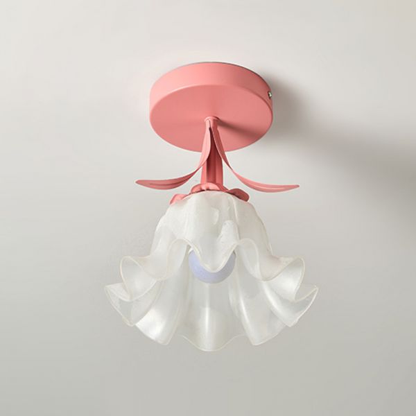 Whimsical Floral Semi Flush Mount Ceiling Light with Frosted Glass Petal Shade for Hallway Nursery - Pink 110V-120V