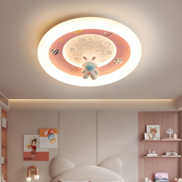 Whimsical Astronaut LED Ceiling Light with 3D Moon Texture for Kids Bedroom Playroom - Pink 110V-120V Third Gear (Warm/White/Neutral Light of Dimming)