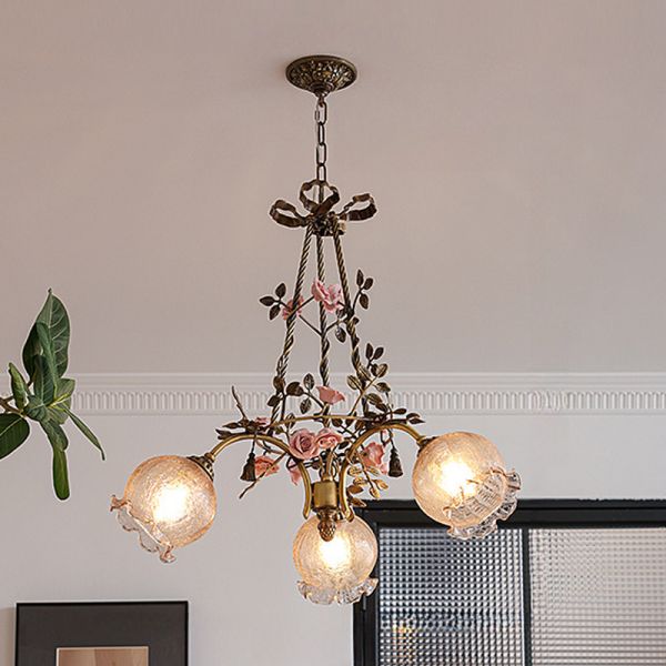 Crackle Glass Transparent Hanging Light with Adjustable Height, 3, 110V-120V, Pinkish Red