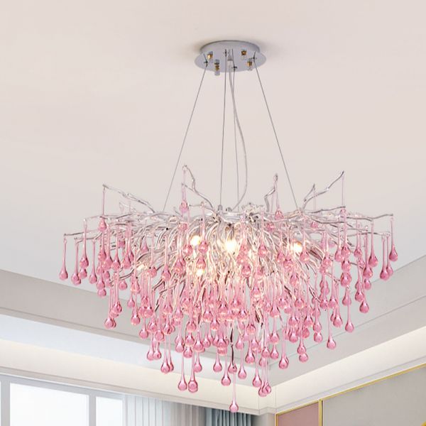 Whimsical Branch Chandelier with Glass Raindrops for Ambient Luxury Interiors - Pink 110V-120V 24"