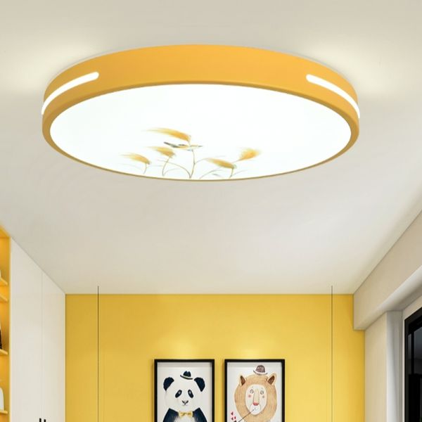 Modern Macaroon Round Ceiling Lamp Iron 1 Light Flush Mount for Study - Yellow 110V-120V 12" White Light