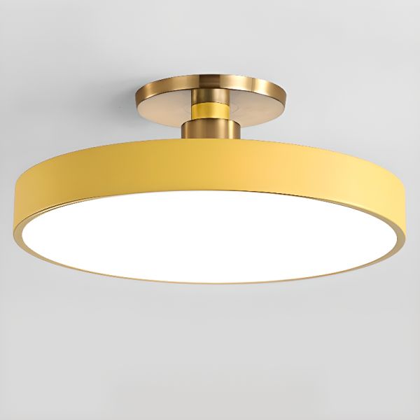 Scandinavian Round LED Flush Mount Ceiling Light, Minimalist Metal Drum Fixture for Low Ceilings - Yellow 110V-120V 12" White Light