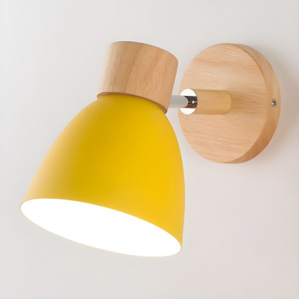 Scandinavian Adjustable Wall Sconce, Wood and Metal Reading Light Fixture for Bedroom or Hallway - 110V-120V Yellow