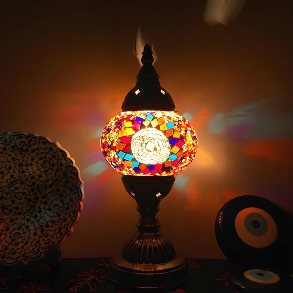 Vintage Style Turkish Mosaic Table Lamp Glass Lamp Shade Desk Lamp Fixture - Yellow Plug In Electric 110V-120V