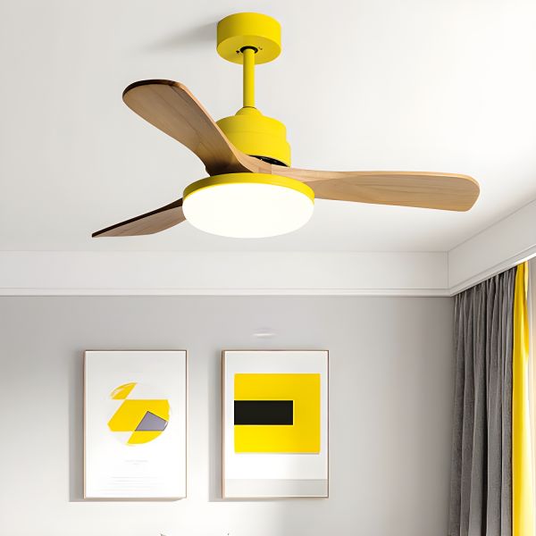 Scandinavian Flush Mount Ceiling Fan with Light, Solid Wood Blades and Quiet Motor - 110V-120V Yellow