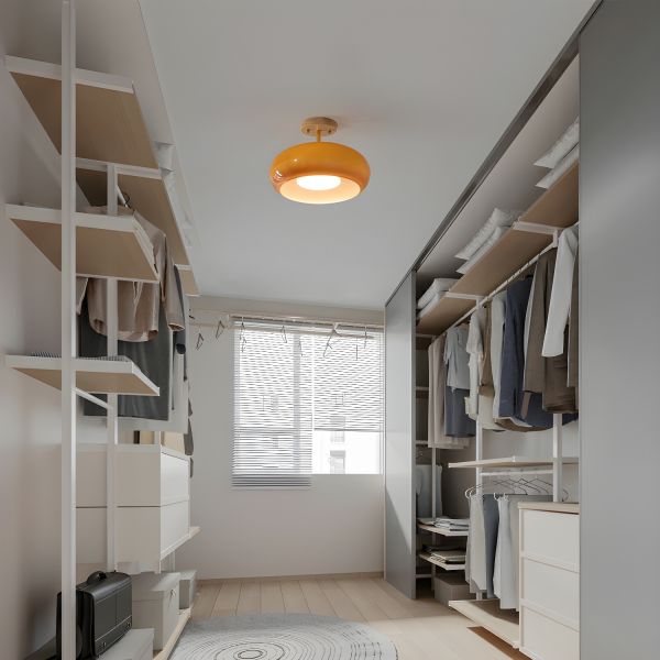Scandinavian Glass Semi-Flush Mount Ceiling Light with Wood Base for Hallway and Bedroom - Orange 110V-120V