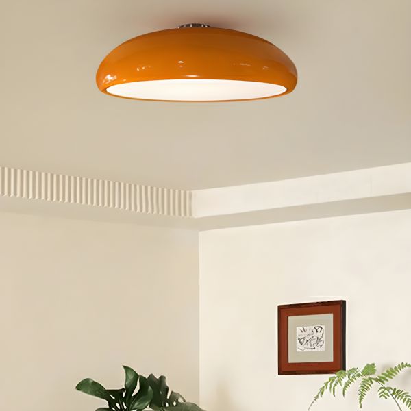 Mid-Century Space Age Flush Mount Ceiling Light, Retro Orange Mushroom Dome Fixture - 110V-120V 18"